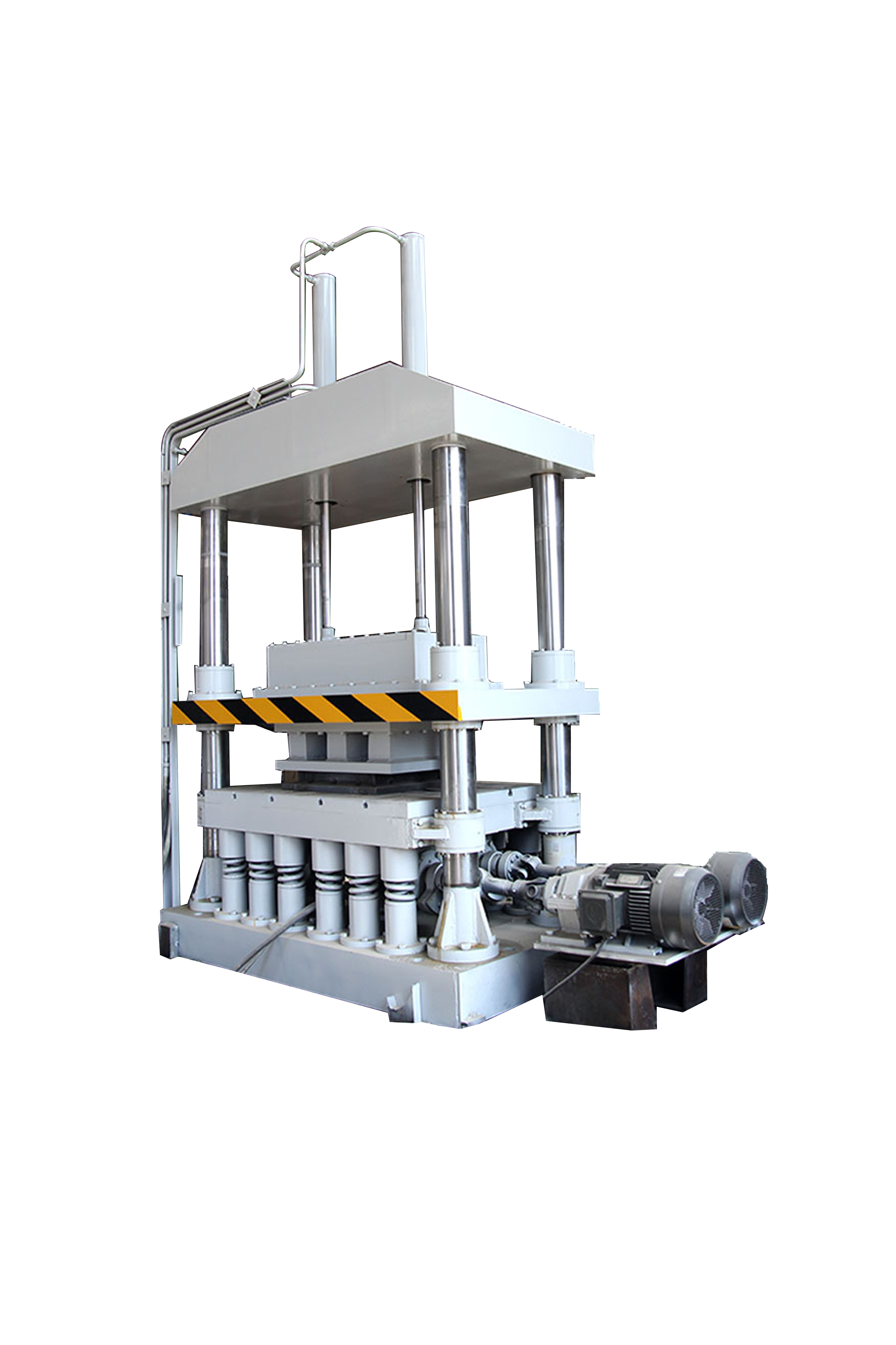 液壓激振合力成型機,是在振動成型原理的基礎上,吸收了振動成型機、油壓機、摩擦壓力機等各種同類機械的優(yōu)點,結合我廠新專利產(chǎn)品調(diào)頻調(diào)幅型壓機經(jīng)過改進創(chuàng)新設計而成的。是一種集慣性振動、電液控制加壓、半干法壓制成型的先進設備。壓制面積較大薄件制品和厚件制品是本系列機型的特長。